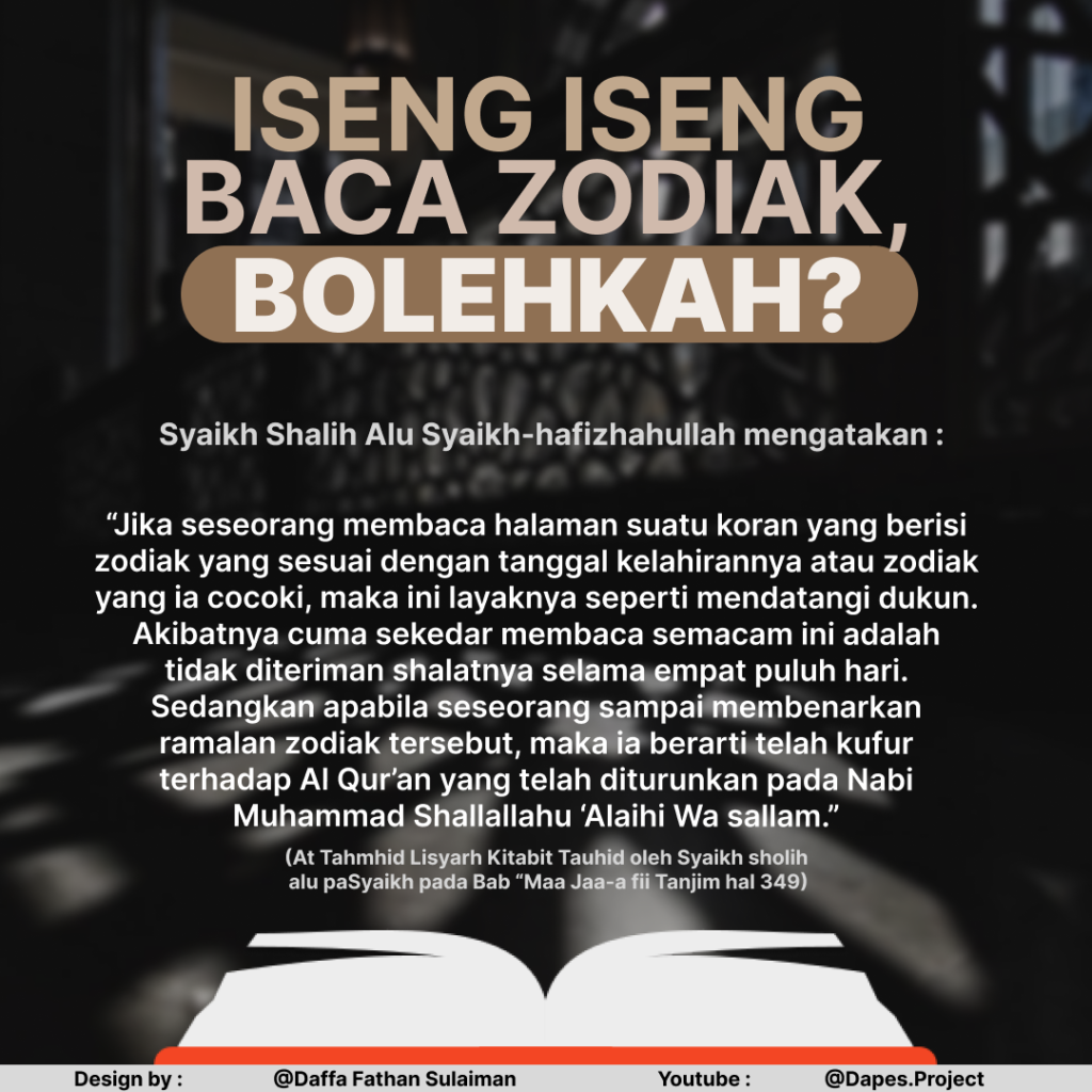 Membaca zodiak bisa menggiring seseorang pada keyakinan yang salah, yaitu mempercayai bahwa bintang atau planet bisa mempengaruhi takdir atau nasib kita. Padahal, hanya Allah yang menentukan segala sesuatu. Sebagai umat Islam, kita diajarkan untuk bertawakal kepada Allah, berusaha dengan cara yang halal, dan menyerahkan hasilnya kepada-Nya. Oleh karena itu, lebih baik kita menghindari praktik-praktik yang tidak sesuai dengan aqidah tauhid kita dan fokus pada upaya untuk mendekatkan diri kepada Allah melalui doa, amal shaleh, dan selalu memperbaiki niat.”