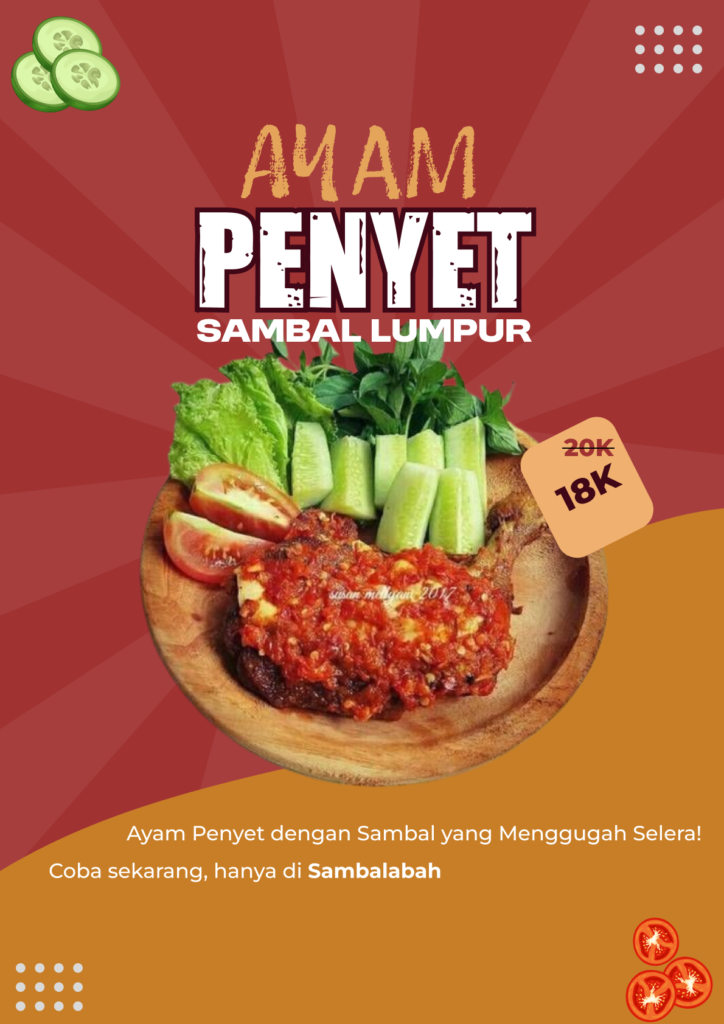 Hello friends so this time I explain poster design. Poster Design is a promotion of food, drinks or a discounted item. I made a poster design about Ayam Penyet Sambal Lumpur from Restorant Sambal Abah. I made it using Figma Software easier than Canva.